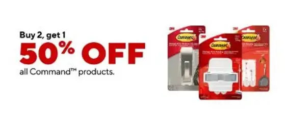 Limited time only! Shop in store and buy 2, Get 1 50% Off all Command™ Products.